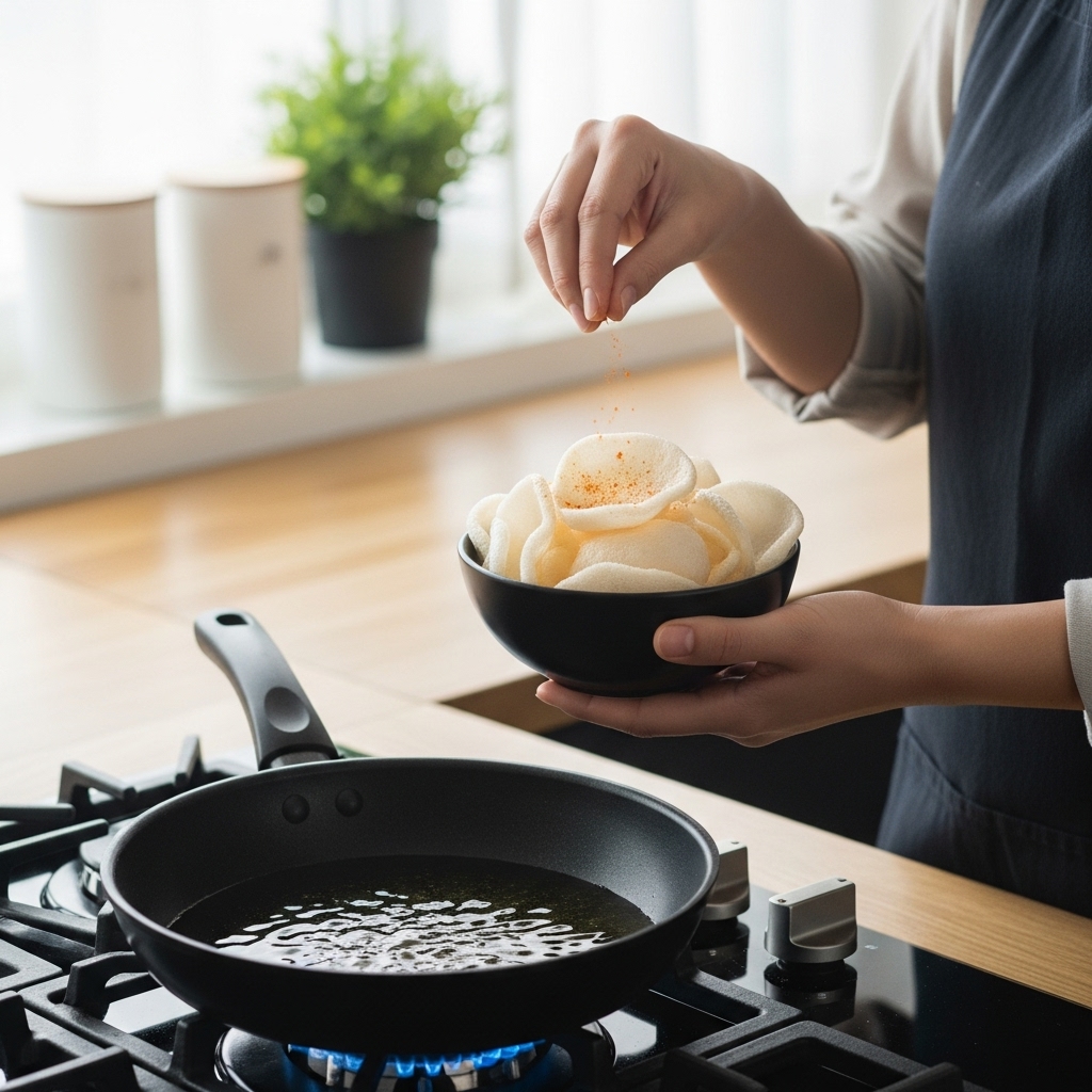 এই চিপসটির নিজস্ব কোনো কড়া ফ্লেভার নেই, আর এটাই এর সবচেয়ে বড় সুবিধা। প্রতি ১ কেজি প্যাকেটের সাথে পাবেন ৫০ গ্রাম প্রিমিয়াম মসলা ভাজার পর গরম থাকা অবস্থায় আপনি এর ওপর ছিটিয়ে দিতে পারেন আপনার পছন্দের যেকোনো মসলা।