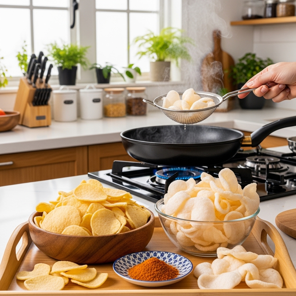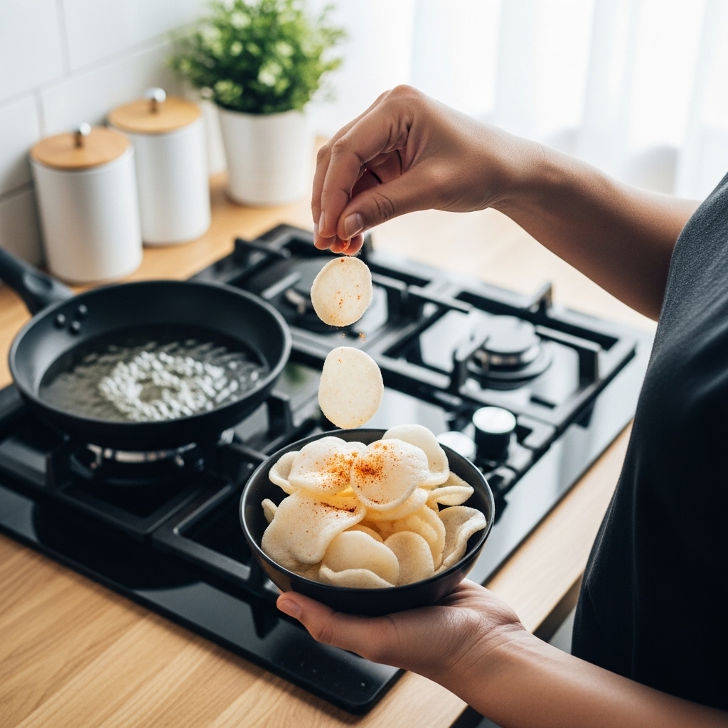 ১.আমাদের এই চিপসের সবচেয়ে বড় আকর্ষণ হলো এর ফুলে ওঠার ক্ষমতা। দেখতে ছোট ছোট টুকরো, কিন্তু গরম তেলে ছাড়ার ১-২ সেকেন্ডের মধ্যেই এটি ম্যাজিকের মতো ফুলে-ফেঁপে তার আদি আকারের চেয়ে ২-৩ গুণ বড় হয়ে যায়। মাত্র এক মুঠো কাঁচা চিপস ভাজলেই চোখের সামনে তৈরি হয়ে যায় এক গামলা ভর্তি মুচমুচে নাস্তা!